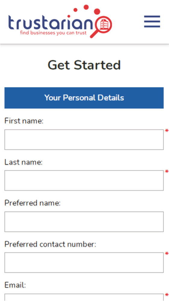 Here you can quickly set up your online profile by selecting Trustarian Business or +Add Home. Simply add your details to the blank fields and make payment if a paid profile has been selected. Submit for approval and we’ll do the rest.